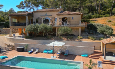 Exclusivité BARNES. À seulement 20 kilomètres à l’ouest d’Aix-en-Provence, cette propriété provençale rare, implantée sur environ 1 hectare, s’inscrit dans un environnement soigné et préservé. Dès l’entrée, une allée bordée de pins et de cyprès révèle un ensemble parfaitement maîtrisé, où le parc, véritable signature des lieux, déploie ses volumes, ses perspectives et ses essences méditerranéennes dans une harmonie remarquable. Dans ce cadre paysager de grande qualité se dévoile une configuration exceptionnelle : deux maisons indépendantes, toutes deux de plain-pied, offrant une organisation rare et recherchée. Ce double bâti permet d’envisager de multiples usages, résidence familiale, maison d’amis, hébergement d’un gardien ou création d’un revenu locatif, tout en préservant l’intimité de chacun. La maison principale, d’une surface de 221,40 m², propose des espaces généreux baignés de lumière. Une entrée élégante distribue un grand bureau pouvant devenir une chambre supplémentaire, puis une vaste pièce de vie réunissant salon et salle à manger, largement ouverte sur les terrasses et le parc. La cuisine indépendante est prolongée par un cellier et une buanderie. La suite parentale bénéficie d’un dressing, d’une salle de bain / salle d’eau et de toilettes. Une seconde aile accueille quatre chambres, une salle d’eau, une salle de bain et un dressing, assurant confort et intimité au quotidien. Indépendante, une annexe de plain-pied d'une surface de 15,50m2 complète l’ensemble du bâti. Elle se compose d’un salon, d’une cuisine, d’une salle d’eau avec toilettes, et dispose de sa propre terrasse privative, offrant un espace autonome idéal pour recevoir ou pour un usage professionnel. La seconde maison, d’une surface de 85,9 m², dispose d’un accès totalement indépendant, ainsi que de son propre cheminement. Elle comprend une entrée, un salon avec salle à manger et cuisine américaine, deux chambres et une salle d’eau avec toilettes. Les extérieurs dévoilent de superbes espaces paysagers organisés autour d’une piscine 11 × 5 m et d’un élégant pool house, accompagnés de plusieurs terrasses. La propriété bénéficie également de plusieurs abris de jardin et d’un local technique dédié à la piscine, ainsi que de vastes possibilités de stationnement. À moins de 1 km des commerces, la propriété bénéficie d’un accès rapide aux grands axes et jouit d’une situation privilégiée : environ 20 minutes d’Aix-en-Provence, environ 25 minutes de la gare TGV d’Aix-en-Provence, et environ 30 minutes de l’aéroport de Marseille-Provence.