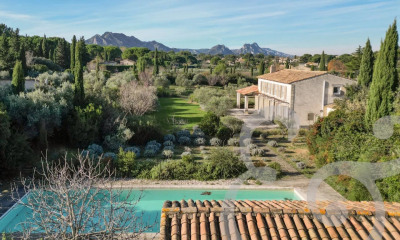 Eygalières, à quelques minutes du centre du village, cette magnifique propriété a été récemment rénovée. Au coeur d'un beau jardin arboré et paysagé de près d'1,5 hectare, la bâtisse offre 300m2 d'espace de vie ou se mêlent le charme de l'ancien avec des équipements modernes et fonctionnels. Au rez de chaussée , un vaste séjour salon avec cheminée, une belle cuisine entièrement équipée avec espace repas, arrière cuisine et cave, le tout ouvrant sur les terrasses ombragées pour les repas et les longues soirées d'été. On trouvera également 3 chambres en suite avec accès direct au jardin. A l'étage, 3 chambres en suite supplémentaires dont une bénéficiant d'une grande terrasse couverte privative. Le jardin est planté d'essences méditerranéennes et abrite une belle piscine chauffée de 15m X 5 m avec son pool house. Une dépendance de 40m2 vient idéalement compléter la bâtisse principale en offrant un espace de détente avec salle de sport, hamman et sanitaires ( possibilité de chambre supplémentaire). Garages Pour plus de détails sur cette magnifique propriété, merci de nous consulter