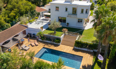 Une maison qui respire l’âme de la Provence - Située au calme, au Sud d’Aix-en-Provence, cette maison d’architecte orientée plein sud, lumineuse, offre une vue imprenable sur le Pilon du Roy et les collines environnantes. Implantée à Simiane-Collongue sur un parc arboré de 5 694 m² agrémenté d’oliviers, pins et chênes, elle développe 385 m² répartis entre la maison principale, un appartement indépendant, un espace détente et sports. Les espaces intérieurs allient charme et confort pour toute la famille : vaste pièce de vie de 93 m² avec voûtes en pierre et cheminée, cuisine, 5 chambres dont 2 suites avec salles de bains et une suite parentale climatisée. Le rez-de-jardin comprend une vaste pièce, un sauna, de nombreux rangements, une cave à vin, et pourra être aménagé en habitation, ou espace de détente. À l’extérieur, de larges terrasses en pierre entourent la piscine à débordement 12 x 6 m et son pool house entièrement équipé de 20 m², idéal pour recevoir été (climatisé)comme hiver. S’ajoutent d’autres annexes : garage, locaux techniques, 2 annexes dont 1 cadastrée de 25 m2, un vide sanitaire de 200 m2 avec une hauteur de 2m pour rangement et accès réseau aménagé. Prestations de qualité : chauffage par pompe à chaleur, volets roulants, portail automatique, alarme. Proximité immédiate d’Aix-en-Provence et Marseille, accès rapides aux commerces, écoles internationales à proximité (CIPEC, IBS, SVIS, golf de FUVEAU) et transports. Un bien rare alliant nature, confort et architecture élégante. Honoraires de 3,50 % à la charge de l’acquéreur inclus dans le prix de vente.