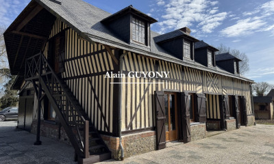 En Normandie, au cœur du Pays d’Auge et sur la route du cidre, propriété de caractère de style normand, d’une surface habitable d’environ 390 m², dans un environnement verdoyant en position dominante et sans vis-à-vis. Répartie sur deux niveaux, elle présente au rez-de-chaussée : une entrée donnant sur une cuisine aménagée et équipée, ouverte sur une terrasse orientée plein sud, un vaste espace de vie d’environ 110 m², lumineux et traversant comprenant un salon avec cheminée, un espace bar, une salle à manger avec poutres apparentes, un bureau, un second salon, plus intimiste, permettant de créer un coin lecture ou télévision, enfin, une suite parentale avec une salle de bains/douches avec accès direct à la terrasse et au jardin. À l’étage, la maison comprend six chambres spacieuses, dont certaines disposent d’un balcon avec vue sur le parc arboré. Une salle de bains et une salle de douches viennent desservir cet espace nuit. Un sous-sol avec garage pouvant accueillir jusqu’à quatre véhicules, un atelier et des espaces de rangement complètent ce bien. L’extérieur, entièrement aménagé, s’étend sur un terrain de près de 7 hectares composé de prairies, de paddocks, d’un jardin paysager, d’un étang et de plusieurs dépendances. Une grande piscine couverte et chauffée, parfaitement intégrée à l’ensemble, permet une utilisation toute l’année. Michael Zingraf Real Estate Cabourg vous propose à la vente une charmante propriété de qualité avec piscine parfaitement située à proximité de Pont l’Evêque.