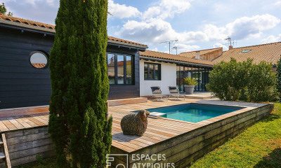 LOCALISATION : En plein centre d'une commune agréable à vivre à 20 min en voiture au Nord de La Rochelle (15 km). Sur le littoral à la limite de la Vendée et disposant de nombreux commerces. DESCRIPTION : Très belle rénovation dans un esprit ''ile de Ré'', maison de plain pied disposant de 5 chambres, 2 salles d'eau, grand salon séjour avec poêle à bois, cuisine ouverte et une belle salle à manger permettant d'accéder à l'espace extérieur. Jardin paysagé, grande piscine chauffée avec pool-house, garage isolé de 56 m². La disposition des pièces permet de privatiser une partie de la maison, déjà aménagée en petit appartement en duplex avec 2 chambres, accès indépendant possible et terrasse privative. (idéal BnB) LES ATOUTS : L'aspect locatif non négligeable sur ce secteur privilégié proche des plages vendéennes. La maison peut passer de 175 m² à 125 en un clin d'œil en fonction des besoins. Très grand garage isolé permettant le stockage de matériel professionnel, pas de vis à vis, finitions parfaites, belles prestations. Aucunes nuisances. AUTRE : Classe énergie C, puits et alarme. Annonce proposée par Alexandre PERONNEAU, appelez moi pour discuter de votre projet immobilier. Les honoraires sont à la charge du vendeur. Les informations sur les risques auxquels ce bien est exposé sont disponibles sur le site Géorisques : georisques. gouv. fr. Réseau Immobilier CAPIFRANCE - Votre agent commercial (RSAC N°789 416 864 - Greffe de LA ROCHELLE) Alexandre PÉRONNEAU Entrepreneur Individuel Réf.930499
