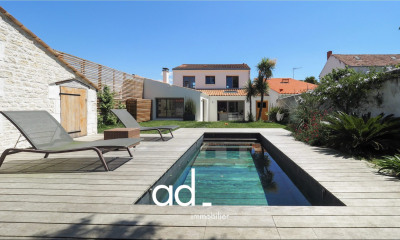 La Rochelle Ile de Ré Sotheby's international Realty, vous propose, cette maison unique par son style nichée sur son parc arboré sans vis à vis et clos de mur. Elle est composée d'une entrée, d'un grand salon avec cheminée, d'une grande salle à manger avec elle aussi sa cheminée, d'une cuisine équipée et aménagée, d'une arrière cuisine lingerie et toilette. Aux étages, vous retrouverez les cinq chambres avec leur point d'eau ainsi que les sanitaires et d'autres pièces à finir d'aménager. A l'extérieur, une piscine avec sa terrasse en pierre, une orangerie, une dépendance à restaurer sur deux niveaux de soixante mètres chacun et d'autres dépendances. un vrai havre de paix à La Rochelle.