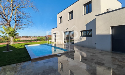 Optimhome vous présente une maison contemporaine de 300 m² utiles (250 m² habitables) avec patio et piscine – 20 minutes de Villefranche-sur-Saône UN BIEN POLYVALENT : À LA FOIS FAMILIAL & PROFESSIONNEL Cette maison récente (2010), située en fond d'impasse, au calme absolu et sans vis-à-vis, offre un cadre de vie lumineux et confortable. Elle s'adresse autant à une famille recherchant espace et qualité de vie, qu'à un artisan, entrepreneur ou profession libérale souhaitant bénéficier d'un lieu de travail optimisé et indépendant CÔTÉ ACTIVITÉ PROFESSIONNELLE : UN ESPACE DÉDIÉ & INDÉPENDANT La propriété peut vous proposer un grand espace d'environ 100 m², idéal pour : • atelier ou stockage • activité artisanale • profession libérale / cabinet • bureau + réception clients • matériel, outillage ou véhicules professionnels Cet espace bénéficie en plus d'une entrée indépendante, permettant de recevoir clients, fournisseurs, etc sans empiéter sur la vie familiale. CÔTÉ FAMILLE : UN ESPACE DE VIE GÉNÉREUX & LUMINEUX La pièce de vie de 90 m², traversante et baignée de lumière, se prolonge d'un côté sur une terrasse abritée et de l'autre sur un patio central de 30 m², véritable pièce extérieure utilisable toute l'année. Le coin nuit offre 4 chambres de 20 m², un dressing de 8,5 m², une salle de bains et une salle d'eau. Une buanderie de 20 m² peut facilement devenir salle de jeux, bureau, atelier créatif ou espace familial supplémentaire. Pour une famille, cette configuration permet : • de profiter de volumes rares • d'avoir des espaces distincts selon les moments de vie • de recevoir confortablement UN EXTÉRIEUR CALME & CONFIDENTIEL POUR TOUS LES PROFILS Sur un terrain clos et arboré de 2 200 m², l'extérieur a été pensé pour la détente : • Piscine 10 × 4,50 m • Terrasse 150 m² • Patio central • Espaces ombragés et ensoleillés Qu'on y vive en famille ou qu'on y exerce une activité, chacun peut y trouver son rythme. LOCALISATION STRATÉGIQUE Saint-Jean-de-Thurigneux : un environnement verdoyant, préservé et bien connecté. • Lyon 30 min • Villefranche-sur-Saône 20 min • Villars-les-Dombes 10 min • Bourg-en-Bresse 35 min Une maison polyvalente et rare, permettant à chacun de concilier vie familiale et/ou activité professionnelle, dans un confort quotidien exceptionnel. Nombre de lots de la copropriété: 12, Montant moyen de la quote-part annuelle de charges (budget prévisionnel) : 240 euros soit 20 euros par mois. Les honoraires sont à la charge du vendeur. Les informations sur les risques auxquels ce bien est exposé sont disponibles sur le site Géorisques : georisques. gouv. fr. Contactez Julie ARGOUD Entrepreneur Individuel, Agent commercial OptimHome (RSAC N°752 765 792 Greffe de LYON) (réf. 593994 )