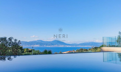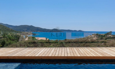 À 600 mètres de la plage cette villa avec vue mer d’environ 250 m² se situe dans un environnement calme et résidentiel, hors lotissement. de Plain-Pied: un vaste séjour baigné de lumière, prolongé par une terrasse et un terrain plat engazonné. Une cuisine équipée avec arrière-cuisine complète l’espace de vie. Trois chambres, dont une avec salle d’eau privative, ainsi qu’une seconde salle d’eau, bénéficient toutes d’un accès direct à la terrasse et à la vue mer. La piscine, aux lignes organiques, s’intègre parfaitement au paysage. Elle prend naissance au niveau principal et se prolonge en cascade vers un bassin plus profond situé au rez-de-jardin. À l’étage, une vaste suite parentale avec dressing et salle de bains s’ouvre sur une terrasse offrant vue mer et couchers de soleil. En rez-de-jardin, une dépendance comprend un salon, une chambre, un grand dégagement et une salle d’eau. Une seconde dépendance de plain-pied complète l’ensemble. Le jardin paysager, agrémenté d’un verger avec citronnier et nombreux clémentiniers, offre un cadre intime et préservé, dans un calme absolu. Grand garage