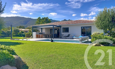 Au Sud de PORTO-VECCHIO, dominant la baie de Palombaggia DÉFINITION : Emplacement privilégié pour cette villa exposée plein Sud, bénéficiant d'une vue panoramique sur la mer, implantée sur un magnifique terrain de 4780m², composé d'essences locales. A seulement 600m de la plage de l'ACCIARO DESCRIPTION : Au niveau principal: - Salon avec cheminée - Cuisine ouverte sur la salle à manger - Cellier attenant Le tout donnant sur une vaste terrasse de 52 m²en partie couverte côté mer - Une chambre parentale prolongée par sa terrasse - Une chambre Ces 2 chambres sont climatisées avec vue sur la mer - Une salle d'eau - Une salle de bain - Toilettes En rez-de-jardin Avec entrée indépendante, un appartement composé d'une kitchenette, d'une chambre ouvrant sur jardin, d'une salle d'eau et d'un wc séparé * Assainissement de type non collectif * Garage avec coin buanderie * Cave * Année construction 1991 Dossier complet sur demande