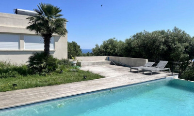 Century 21 Dary Immobilier est heureux de vous proposer à la vente, en exclusivité, cette magnifique villa vue mer d'environ 182 m² habitable. Située sur les hauteurs de Pietranera, commune de San Martino di Lota, la villa est idéalement située entre mer et montagne. Elle dispose d'une vue mer exceptionnelle et d'une grande piscine. À seulement 5 minutes de Bastia, vous serez charmés par la commodité de son emplacement et par la beauté de son environnement. La propriété d'environ 1 900 m² offre une villa de 182 m² disposée sur trois niveaux : - En rez-de-jardin, une chambre, un bureau, une salle de bains et un WC invité. À cet étage, vous disposerez également d'un grand garage de 25 m², d'une buanderie de 23 m2 et d'une loggia. - À l'étage, sur la restanque supérieure, vous trouverez l'entrée principale de la villa, un séjour cuisine de 60 m² disposant de grandes ouvertures face à la mer, un WC invité, un balcon et une grande terrasse. L'espace nuit dispose d'une grande suite parentale de 35.60 m² avec dressing, salle d'eau et WC. - Dans les combles aménagés, vous trouverez deux chambres supplémentaires, un WC et un grenier. Coup de c½ur de l'agence pour cette propriété qui surplombe la mer. Pietranera signe le début du Cap Corse, lieu privilégié pour son ensoleillement et sa proximité de Bastia. Beaucoup de personnalité pour cette villa qui a été rénovée avec des matériaux nobles. Le parquet en chêne fumé est très actuel ainsi que la cuisine aux tonalités bleues nordique. La grande suite parentale, avec dressing et salle d'eau, est également extrêmement moderne de par sa conception. L'espace piscine parfaitement intégré est en pierre naturelle de travertin. Chaque pièce dispose de la vue mer et s'ouvre sur de lointains horizons. Un endroit paisible, privilégié qui invite au voyage. Un bien rare sur le secteur. Prix : 1028000.0 euros, Honoraires charge vendeur. Montant estimé des dépenses annuelles d'énergie pour un usage standard entre 1310.0 € et 1840.0 €, indexées à l'année 2023 (abonnements compris).