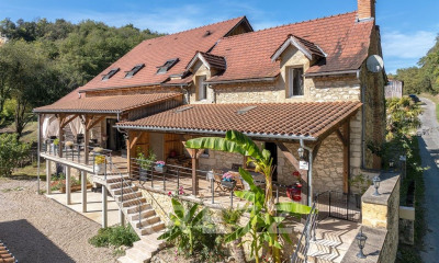 Cette belle maison en pierre est située dans le 'Triangle d'Or' de la vallée de la Dordogne, entre Beynac et Saint Cyprien. La propriété a été rénovée et est dans un état impeccable. La maison est sur trois niveaux et offre au rez-de-chaussée, donnant sur la terrasse, un salon avec une salle à manger avec portes-fenêtres donnant sur le jardin, une grande cheminée en pierre avec un petit coin repas. Cette pièce mène à la cuisine et à la salle à manger, puis à le cellier et la buanderie avec une douche. Cet étage s'ouvre sur la terrasse couverte avec un coin salon et des vues sur la vallée de la Dordogne. Au rez-de-jardin, les escaliers du premier étage mènent à un deuxième espace de vie avec une cheminée, deux doubles portes-fenêtres et une pièce voûtée qui pourrait servie comme chambre supplémentaire ou la cave à vin. Cette pièce s'ouvre sur le jardin avec un salon d'été au bord de la piscine. Au dernier étage se trouve la suite parentale avec son dressing et sa salle de bains complète, dont les fenêtres offrent une vue sur la vallée de la Dordogne. La deuxième chambre dispose d'une salle de bains attenante avec douche et d'un WC séparé. Une ancienne grange attenante a été partiellement rénovée pour offrir un salon avec trois portes coulissantes avec vue sur la vallée et à l'étage deux chambres avec salles de bains attenantes et une buanderie. Il ne reste plus qu'à finir les travaux - l'installation de la cuisine et les salles de bains aussi bien que les escaliers pour accéder à l'étage, et la décoration. Il pourrait servir comme très belle extension de la maison principale ou bien d'un logement séparé pour les invités ou comme location de vacances. La piscine à débordement est en forme d'haricot et offre de belles vues sur la vallée de la Dordogne. La propriété dispose d'un portail en fer forgé et d'un garage ouvert pouvant accueillir trois voitures. Il y a également une cave réfrigérée, un four à pain et un abri de jardin (18m2) pour stocker du matériel. La propriété bénéficie d'un terrain de 1.6 hectares et comprend une truffière où, en saison, les fameuses truffes noires du Périgord se trouvent sur le pas de votre porte !