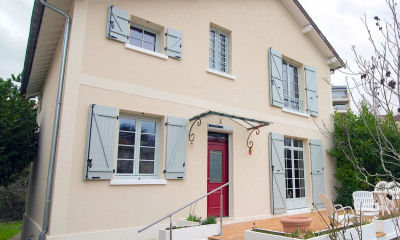 Superbe maison moderniste construite en 1972 par l'architecte Henri GUIBOUT - connu pour la conception du Palais des Congrès et de l'hôtel Concorde Lafayette (aujourd'hui Hyatt Regency Paris Etoile) en 1973 - entièrement rénovée d'une surface habitable de 255 m² au cœur d'un magnifique jardin de 2 550 m² sans vis-à-vis et clos.