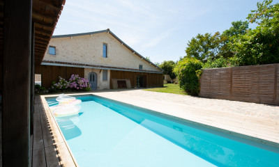 A 25 min de Bordeaux, au coeur de Sai,t Caprais de Bordeaux, située dans un environnement calme et préservé, cette superbe demeure du XVIII siècle développe près de 296 m² habitables, entièrement rénovés avec soin, dans le respect de son charme d'origine.