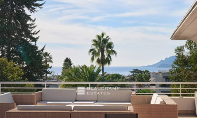 Un appartement spacieux, lumineux, situé en dernier étage, réunissant volumes, extérieurs et vue, dans un environnement central et recherché de Cannes.