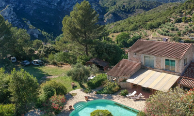 Implantée sur un terrain d'environ 15 000 m² en restanques arborées, la maison développe environ 130 m² habitables et s'accompagne d'une dépendance aménagée d'environ 20 m².
