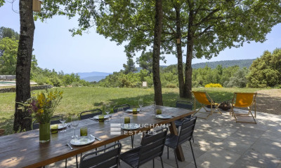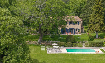 A quelques minutes du village de Bargemon (Var), élégant mas provençal de 1850 Au coeur de 4,4 hectares de terrain paysager et boisé, dominant une superbe vue panoramique sur la vallée, rare propriété contituée de restanques de pierres sèches, vieux oliviers et plantes méditerranéennes, comprenant un mas en pierre, élevé sur 3 niveaux (191 M2).