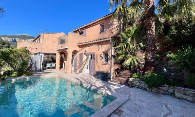 La grande terrasse, qui ceinture la maison, révèle un décor authentique et une vue dominante sur le village, et s'ouvre sur un superbe espace extérieur agrémenté d'une piscine au sel de 8x4 m.