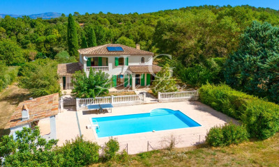 A Montauroux, sur un terrain plat de 4300m2, villa contemporaine de 225m2 habitable, et 200m2 de dépendances. A 5 minutes du village, dans un quartier calme, cette villa aux allures de propriété, terrain paysager entièrement clos, offre un grand séjour, avec coin cheminée, salle à manger et véranda, et cuisine indépendante équipée avec cellier. A l'ouest le bar et bureau, à l'Est la suite parentale de 40m2, avec dressing, baies vitrées, salle de bain (baignoire et douche). Une deuxième chambre au rez de chaussée également. A l'étage, une mezzanine surplombant le séjour, une salle d'eau et deux chambres supplémentaires. Adjacent à la maison, un double garage fermé, (aujourd'hui atelier et garage), avec à l'étage un appartement indépendant. A l'extérieur, un grand garage indépendant, permettant de loger plusieurs véhicules (55m2), un car port, un terrain de boules, un abris de jardin. L'espace piscine permet profiter d'une superbe piscine traditionnelle Diffazur à débordement avec espace jacuzzi (piscine au sel et chauffée). A côté, le confortable pool house (80m2) comprenant une chambre, un cuisine, une douche, une terrasse couverte et une cuisine d'été. Double vitrage, chauffage central au gaz, climatisations reversibles, cheminée, portail électrique avec visiophone, grilles en fer forgé, arrosage et éclairage automatique.. Une maison proposant un ensemble de prestations haut de gamme, dans un écrin confidentiel, proche de l'autoroute..