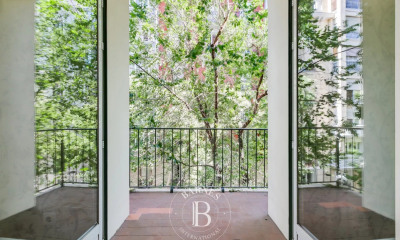 L’appartement conserve des éléments architecturaux de qualité tels que hauts plafonds, moulures murales, boiseries nobles, sols en grès cérame, et un éclairage décoratif soigné. Il est équipé de la climatisation gainable avec système Airzone, permettant un contrôle indépendant de la température dans chaque pièce.