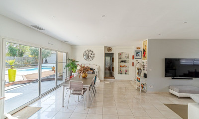 Dès l'entrée, le charme opère: une pièce de vie de plus de 96m² offrant une cuisine ouverte haut de gamme avec un cellier attenant, un coin repas et une salle à manger. Un lieu idéal pour recevoir familles et amis où se mêlent convivialité et modernité, agrémenté d'un coin intimiste, baigné de lumière, invitant à la détente face à un majestueux olivier. Dans le prolongement vous découvrirez un espace de convivialité équipé d'un trio de baies vitrées à galandage qui effacent la frontière entre intérieur et extérieur.