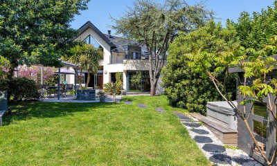 La piscine chauffée, s'accompagne d'une terrasse abritée, ouverte sur le jardin et d'un pool house. Une seconde terrasse avec un accès direct à la cuisine, invite à des repas conviviaux et à des instants de détente, offrant un dialogue subtil entre confort et nature.