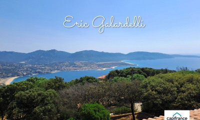 à la terrasse périphérique offrant une vue panoramique sur la mer, Ajaccio et les montagnes environnantes, puis sur le côté se trouve la piscine à débordement, chauffée, de type traditionnelle (sel) entourée de sa plage. L'espace nuit regroupe 2 chambres, chacune équipée d'une salle d'eau avec douche à l'italienne, vasque, sèche-serviettes et wc. La suite parentale dispose d'une salle de bain avec baignoire, douche à l'italienne, double vasques, dressing et wc séparé.