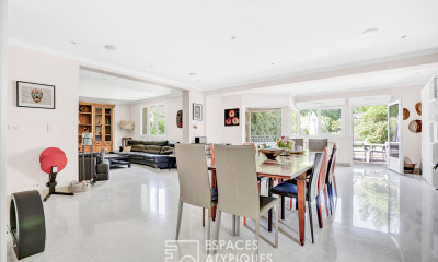 Idéale pour une famille nombreuse ou recomposée, cette somptueuse maison familiale vous permet également d'accueillir une activité libérale ou professionnelle avec un accès indépendant à l'entrée principale de la maison et situé en rez-de-jardin. Outre cet atout, la maison déploie plus de 350 m2 habitables répartis sur 3 niveaux, un RDC sur-élevé, un étage, et un rez-de-jardin aménagé. Tout y est bien pensé !