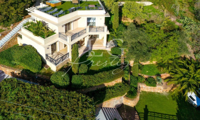 Sur une colline au calme, cette élégante villa offre une vue imprenable et un panorama exceptionnel sur les eaux turquoise de la Méditerranée. Elle est nichée en position dominante, dans un domaine privé et sécurisé, à seulement 5 minutes des plages proche de Cannes et de Saint-raphaël.