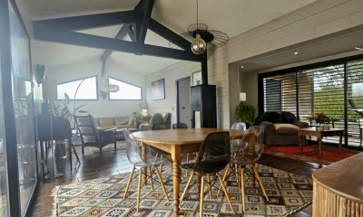 À seulement 10 minutes du centre-ville de Dax, sur la commune dynamique de Oeyreluy, découvrez cette belle maison contemporaine de plain-pied de 168 m², à ossature bois, construite en 2011.