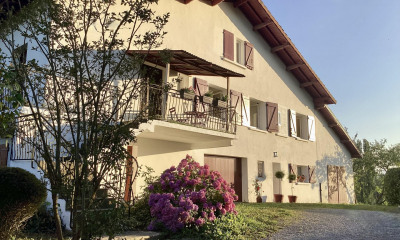 À l'étage, 2 grandes chambres bénéficient chacune de leur balcon privatif, avec vue dégagée sur la campagne et la chaîne des Pyrénées par temps clair.