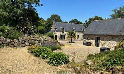 Véritable écrin de nature situé sur la commune de Plogastel Saint Germain, à 15 min de la mer et à l'épicentre des pôles touristiques, cette magnifique propriété constituée de plusieurs belles Bâtisses anciennes, est un lieu idéal pour conjuguer Nature, Mer et Culture à travers la découverte des richesses et du patrimoine historique de l'Ouest Cornouailles.
