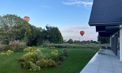 Entrée, cuisine et sanitaires, 3 pièces de réception en enfilade avec une cheminée à feu ouvert, un perron à l'ouest, une bibliothèque.