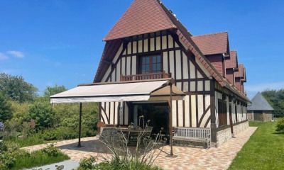 Située au cœur de la campagne normande, cette propriété allie authenticité, confort moderne et potentiel d'aménagement. Dès l'arrivée, l'allée conduit à une terrasse accueillante, soulignant le caractère soigné et entretenu des lieux.