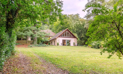 Face à l'entrée, le spectaculaire séjour cathédrale sublimé par une hauteur sous plafond de 7 m, déploie une atmosphère grandiose. Une majestueuse bibliothèque en chêne massif de style Louis XIV y trône, soulignant le caractère unique du lieu. De larges baies vitrées ouvrent sur une terrasse plein sud, prolongée par le parc paysager.