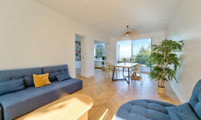 Ce penthouse, seul au dernier étage, baigné de lumière allie modernité, confort et élégance, aux portes de Paris.