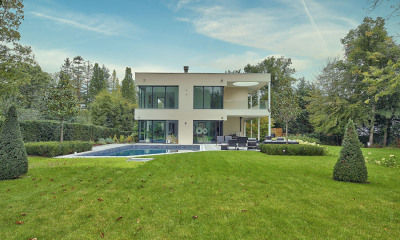 Environnement d'exception au sein d'un Parc privé gardienné video surveillé 24/24 , 7/7, proche de l'accès A 13 reliant Paris Porte d'Auteuil en 15 minutes, Sublime Maison d'Architecte Moderne aux lignes épurées bâtie en 2019 par un architecte international espagnol développant 750 m2 sur 4.000 m2 de Parc avec piscine extérieure chauffée de 12.5 M X 6 M avec nage a contre courant et grande terrasse.