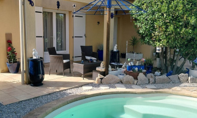 Avec sa pergola, pour une intimité préservée, et sa jolie piscine en forme de coquillage.FORAGE