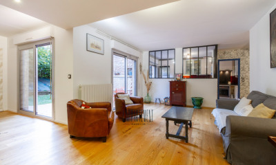 Dès l’entrée, le ton est donné. Un vaste hall ouvert, dominé par un escalier en pierre et sa balustrade en fer forgé, accueille le visiteur. Le rez-de-chaussée se compose de beaux espaces de vie : salon spacieux, salle à manger formelle, bureau, cuisine, buanderie, ainsi qu’une chambre et une salle de bain, permettant une vie de plain-pied.