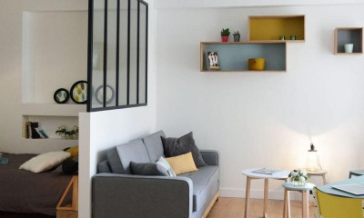 Le deuxième étage est constitué des appartements des propriétaires actuels, ouverts autour de pièces à vivre déstructurées et de grands volumes et comprend également une salle de sport, un jacuzzi et un sauna.