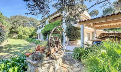 L'extérieur est pensé pour la détente et la convivialité : une vaste piscine, un barbecue intégré, ainsi qu'un éclairage paysager mettant en valeur le jardin méditerranéen (1.800m²).