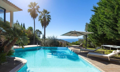 Le seul mot pour décrire cette propriété est : intimité. Isolée par la forêt à l'arrière et sur les côtés, la propriété dispose d'un chemin d'accès privé. Elle est entièrement clôturée de tous les côtés, équipée d'une surveillance vidéo, d'une alarme et d'un gardien. Elle s'ouvre sur la Méditerranée à l'avant pour profiter d'une vue parfaite comme nulle part ailleurs.