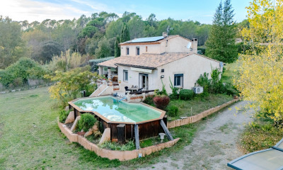 Située à cinq minutes du village historique d'Entrecasteaux autour de son château du XII siècle, et à mi-chemin des villages renommés de la Provence, Lorgues et Cotignac, à 40 minutes des côtes méditerranéennes, implantée en pleine nature de presque 3 ha de terrain boisé en large restanque, cette authentique propriété forme un lieu idéal à vivre au calme absolu avec vue panoramique sur la vallée de la Bresque et sur la montagne du Gros Bessillon
