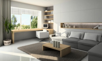Dans le séjour, la végétation est omniprésente ; la frontière entre intérieur et extérieur semble s’effacer. De grandes baies vitrées s’ouvrent généreusement sur un patio luxuriant, où de grandes plantes exotiques déploient leur feuillage.