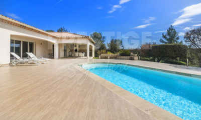 Efficity, l'agence qui estime votre bien en ligne, vous propose : À vendre, en Provence, aux portes de Saint-Maximin-la-Sainte-Baume, dans un cadre exceptionnel avec vue dominante imprenable, une magnifique maison de style contemporain, entièrement rénovée et agrandie en 2018 avec des matériaux de haute qualité. Nichée au cœur d'un écrin de verdure, cette propriété offre un cadre de vie paisible et enchanteur. Déployant une surface totale de 290 m², la maison principale dispose de 245 m², auxquels s'ajoutent 45 m² d'annexe. Le tout est complété par une cuisine d'été, un garage de 50 m², ainsi qu'une piscine entourée d'un terrain arboré et paysagé de 3 000 m², où se trouve également un terrain de pétanque. L'eau est
