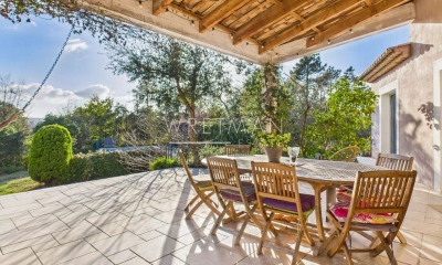 Elle propose des volumes généreux d'une surface habitable de 207,67m2 pour 250,28m2 de surface au sol totale avec le garage et la buanderie. Vous trouverez aussi un pool-house de 9m2, un porche d'entrée abrité de 12m2 et une belle terrasse couverte côté salon de 31m2.