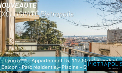 Un cadre de vie recherché et verdoyant à Lyon 5ème, dans une copropriété Pitance de 2006 sécurisée et parfaitement entretenue, ce bel appartement T5 de 117.50 m² propose des volumes généreux, verdure, piscine et tennis réservés aux résidents.