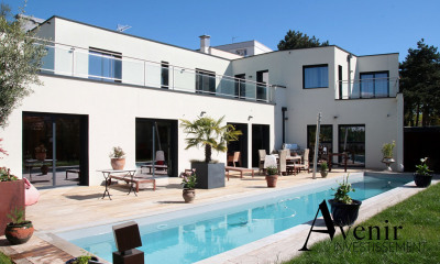 Il comprend une entrée desservant la partie vie : une grande pièce aux beaux volumes et nombreuses baies vitrées, un espace cuisine ouvert sur le salon avec une délimitation par un grand îlot central, idéal pour vos repas en famille et accès direct au jardin d'hiver d'environ 8 m2 !