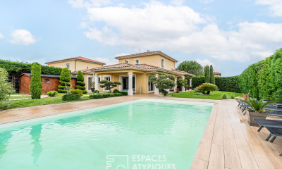 Idéalement située au centre de Saint Bonnet de Mure, dans d'un cadre naturel, calme, sans vis-à-vis, tout en restant au centre de la commune, sur une superbe parcelle de 1 951 m², cette propriété de 286 m² habitables pour plus de 440 m² au sol est une véritable perle rare.