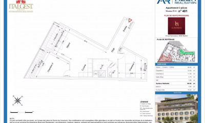 Beneficiando di una bella vista e orientazione sud questo appartamentonuovo 76,8 m², dentro un condominio di 6 ???i include 4 vani con 2 stanze da letto e 1 WC. Esso è fornito di un soggiorno 45,45 m² e di una cucina Aperta. É situato al quarto piano con ascensore. Riscaldamento : Pompa di calore centralizzata. Varie : digicode, televisione via cavo.