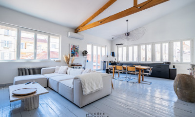 Beneficiando di una bella vista questo appartamento110 m² ha 3 vani con 2 stanze da letto, una bagno e 1 WC. Esso ha un soggiorno 55 m² e una cucina Aperta. Varie : interphone, digicode, caminetto, televisione via cavo.