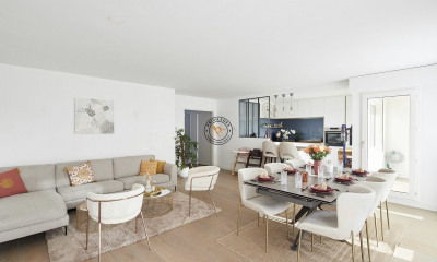 In un medio ambiente calmo, beneficiando di una bella vista e orientazione sud-ovest questo appartamento96 m², costruito nel 1989, dentro un condominio di 3 ???i ha 4 vani con 2 stanze da letto e 1 WC. Esso ha un soggiorno 61 m², una sala da pranzo, una cucina Cucina aperta attrezzata, 2 balconi e un garage. É situato al primo piano con ascensore. Riscaldamento : Elettrico autonomo. Varie : parchetto. Onorario : 3.9.
