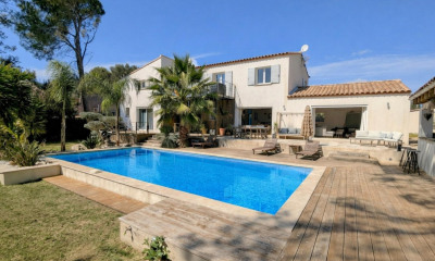 In un medio ambiente calmo, beneficiando di una bella vista questa dimora/villa300 m², costruita nel 2014, con un terreno di 1900 m² include 10 vani con 6 stanze da letto, una bagno e 4 WC. Ha è fornita di una cucina Cucina aperta attrezzata, di un balcone, di una piscina, di una terrazza e di 6 parcheggi. Riscaldamento : Autonomo a pavimento.
