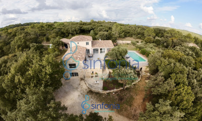 In un medio ambiente calmo, questa dimora/villa (Casa contemporanea) 220 m², costruita nel 1987, con un terreno di 2900 m² ha 8 vani con 3 stanze da letto, una bagno e 3 WC. Ha ha un soggiorno 55 m², una cucina Cucina separata-chiusa attrezzata, una piscina e un garage. Riscaldamento : Pompa di calore.