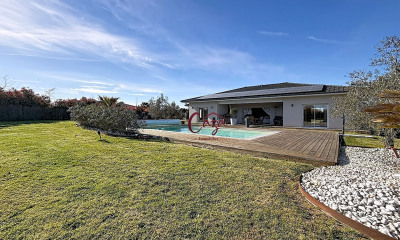 In un medio ambiente calmo, beneficiando di una bella vista questa dimora/villa280 m², costruita nel 2013, con un terreno di 3700 m² ha 7 vani con 4 stanze da letto, una bagno e 4 WC. Ha ha una sala da pranzo, una cucina Cucina aperta attrezzata, un balcone, una piscina, una terrazza, 4 garages e 4 parcheggi. Riscaldamento : Pompa di calore autonoma. Onorario : 3.11.